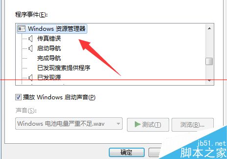 5、在程序事件下方找到【资源管理器】选项,鼠标点击选中