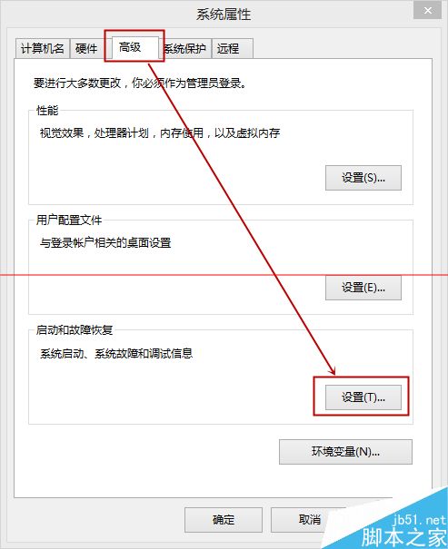 2、在系统属性里依次点击“ 高级”——“启动和故障恢复”里的“设置”