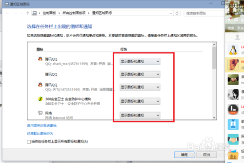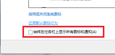 5、如果不想对每个软件进行单独显示设置的话,可以勾选页面左下角的“始终在任务栏上显示所有图标和通知”,这样所有的软件都会显示在电脑右下角