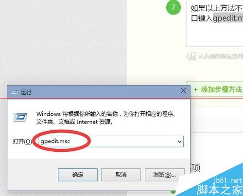 7、如果以上方法不凑效,那可能是权限问题:解决办法如下 win + r 打开命令行窗口键入gpedit.msc,单击确定还是回车你随意。