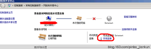 然后依次选择“网络”——“网络和共享中心”对话框或者单击