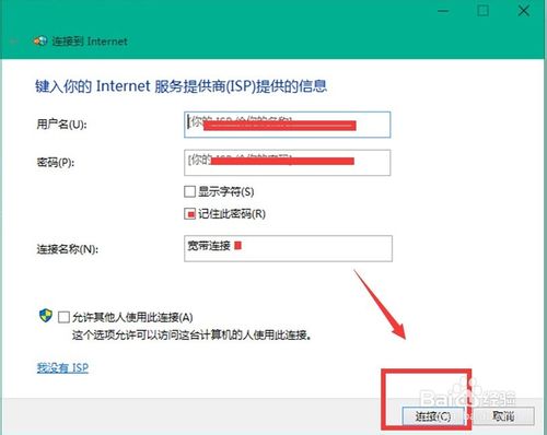 在下面图示中键入你的网络连接信息点击连接。