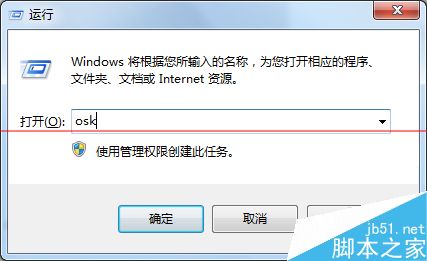2、然后我们在输入框里输入"OSK”,点击确定以后就会弹出系统虚拟键盘,如下图