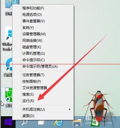 1、右键点击“开始菜单”按钮,在弹出的菜单中选择“运行”菜单项