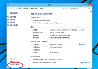 1、按照同样的方法,在这台计算机上右击,打开属性。但是,这次单击左下角的“Windows更新”,如下图。