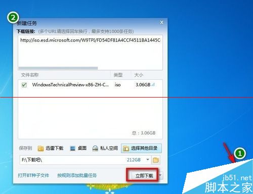 4、打开迅雷下载器,点击新建任务,把刚才复制的地址放进去,点击下载。