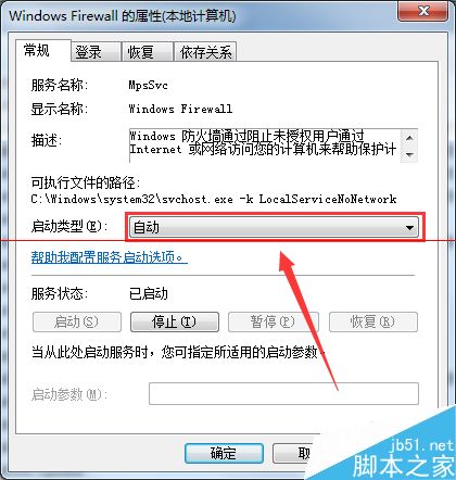 6、在属性中,我们按下启动,并且将启动设置为自动启动。