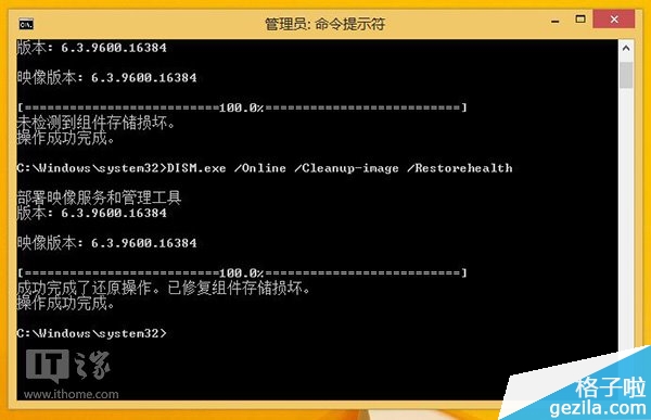4、等待修复完成后,关闭命令提示符,重新运行Windows Update。