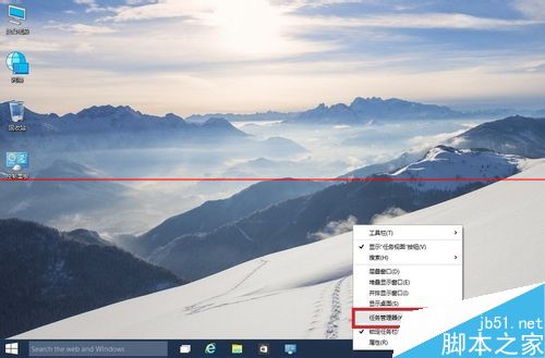 1、在win10系统桌面,任务栏上右击,选择【任务管理器】。