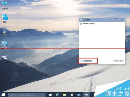 2、打开win10有点呆萌的任务管理器。点击【详细信息】。如下图。
