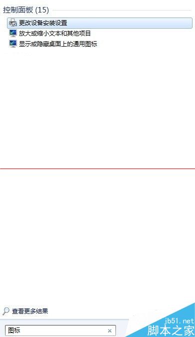 5、在开始菜单--<搜索程序和文件>-中输入“图标", 然后在上方选择<显示或隐藏桌面图标>进入。