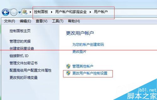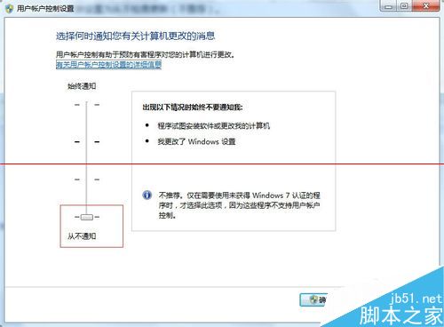 3. 关闭UAC(用户帐户控制):控制面板-用户和家庭安全-用户帐户-更改用户帐户设置 设置为从不通知。