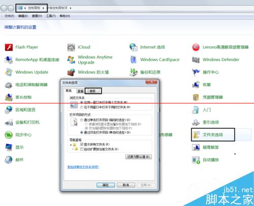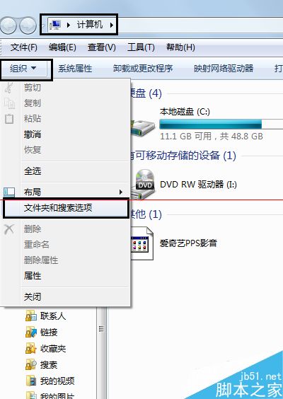 4、假如不想新建账户还有其他的办法,打开计算机-组织-文件夹和搜索选项,