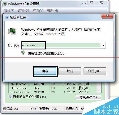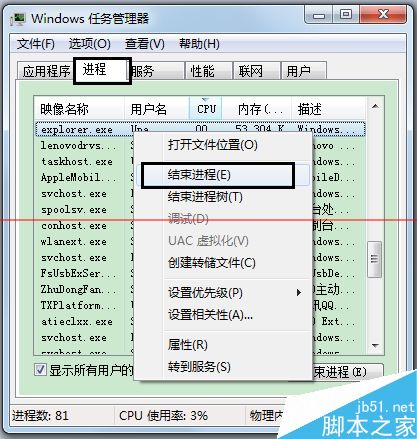 7、然后在任务管理器下找到“进程”选项卡,结束explorer.exe进程,