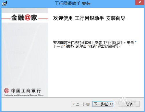 4、弹出“工行网银助手安装”提示窗口,点击“下一步”即可完成安装。