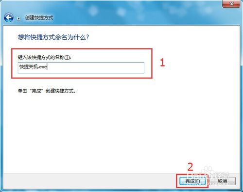 3、随便取个名字,如:快捷关机,然后点击“完成”