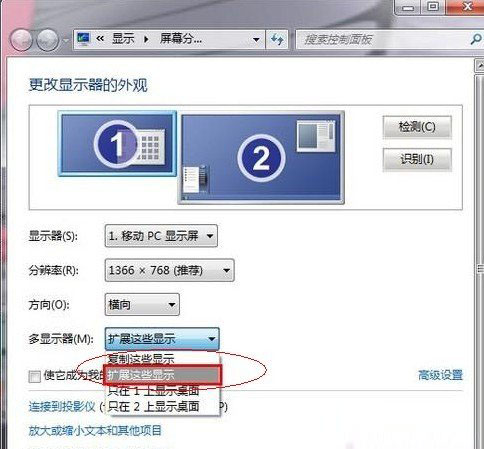以上为大家介绍的是在WIN7系统中设置笔记本双屏显示,在使用的时候拖拽窗口就可以将窗口在不同的显示器之间摆放了,需要用到的朋友不妨按照以上的方法试试,设置很简单,对于觉得笔记本想外接显示器或者液晶电视的朋友值得去试试喔。