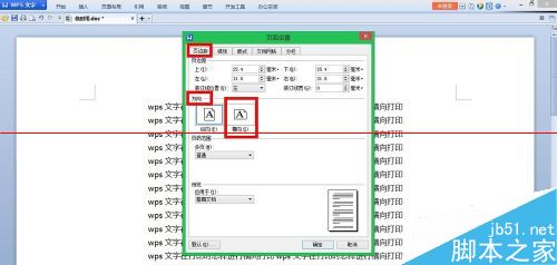 4、在页面设置对话框中,选择“页面距”,再选择“方向”,在方向里选择“纵向”。