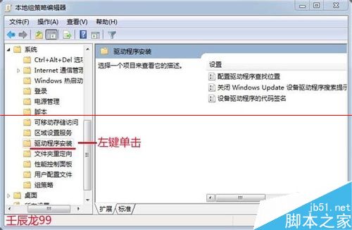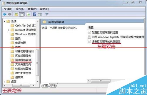 5、在驱动程序安装对应的右侧窗口,我们找到:设备驱动的代码签名,并左键双击:设备驱动的代码签名;