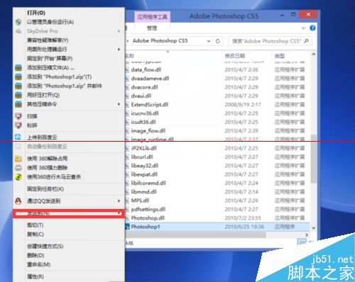 5、右键选项中选择“发送到”---“桌面快捷方式”取代原先的快捷方式。OK!双击打开PS吧!!
