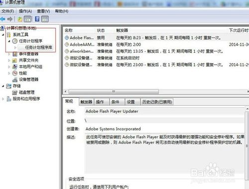 2、管理窗口中,点击“系统工具”下三角——“任务计划程序”下三角的任务程序计划库,如下图所示!