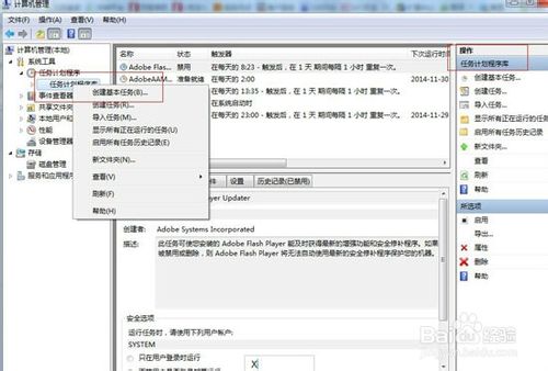 3、右键单击“任务程序计划库”,选择“创建基本任务",或是右边的”创建基本任务“,如图片所示!