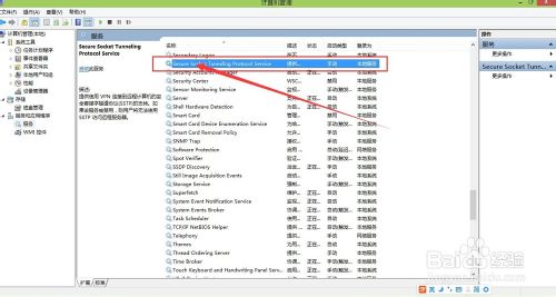 7、如果还是不能上网的话,重复上面1到3步,找到Secure Socket Tunneling Protocol Service的服务,启用它。如下图: