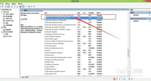 8、现在再找到Remote Access Connection Manager 及 Remote Access Auto Connection Manager服务,一样的启用它们。如下图: