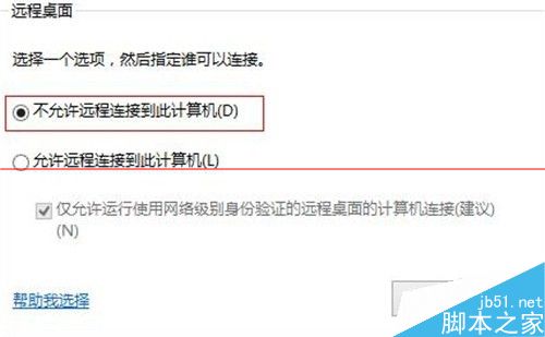 7、勾选远程桌面中的不允许远程连接到此计算机,如下图所示。