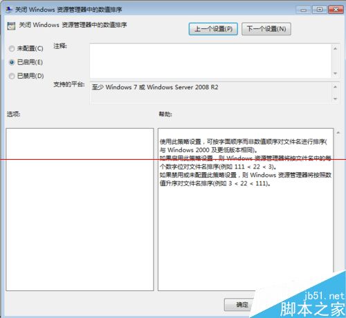 注意事项:可以再过以上步骤让将“关闭 Windows 资源管理器中的数值排序”改为未配置或已禁用,即可恢复win7默认设置。