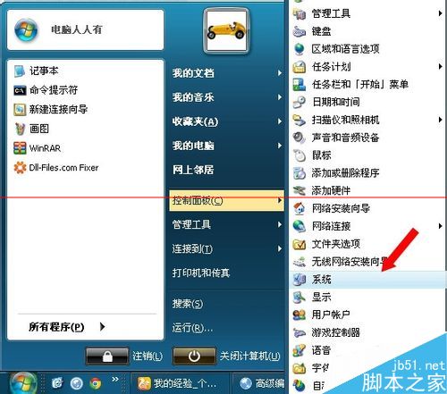 3、开始→控制面板→系统