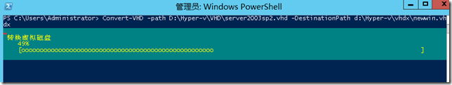 用命令行:convert-VHD –path d:Hyper-vvhdserver2003sp2.vhd –destinationPath d:Hyper-vvhdx