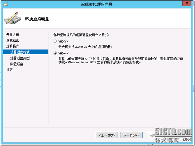 4、选择转换类型,这里要强调一点,Vhd可以转换成VHDX,同事,VHDX也可以转换成VHD。