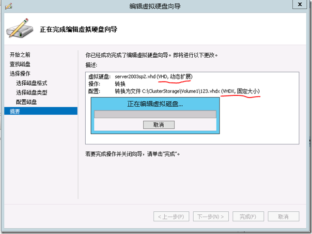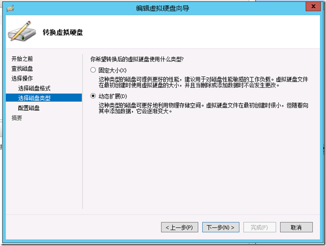 5、可以把固定大小的VHD转换成动态的VHDX,也可以把动态的VHD转换成固定的VHDX。