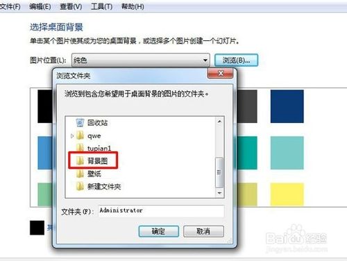 4、选择”浏览“,打开后选择文件夹”背景图“,点击”确定“!