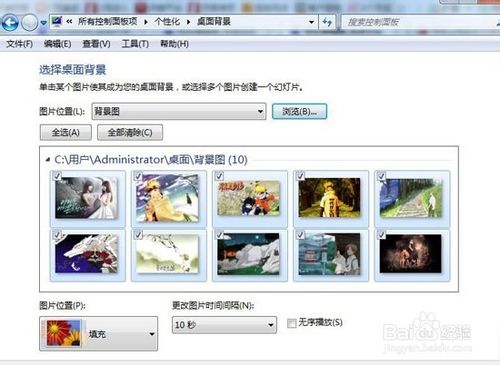 5、选择上方的”全选“,或是有选择性勾选要弄成桌面背景的图片,如下图!ps:没勾选的就不会显示在桌面!