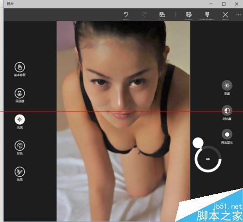 3、在WIN10自带照片软件的编辑模式里左侧点击“光线”