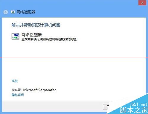 2、选择“网络适配器”。在弹出来的窗口点击下一步进行问题检测。
