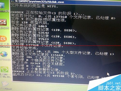 在winPE下,按win+R,运行cmd,输入命令“chkdsk c:/f”,该命令可能要运行很长时间,我这台电脑磁盘有13万多个文件,运行了近2个小时,文件多的要耐心等待。