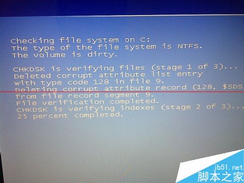 等待这个命令运行结束,结束之后,拔出u盘,重启电脑。这个时候进入系统,磁盘还要自检,自检完成之后就可以进入系统了。