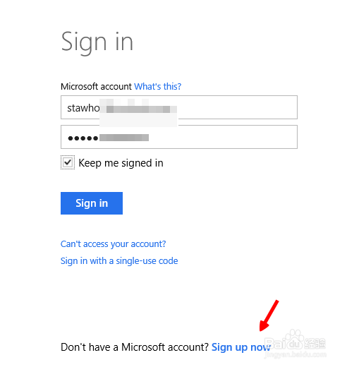 4、登录你的微软账号---没有的就在下面sign up一个吧!