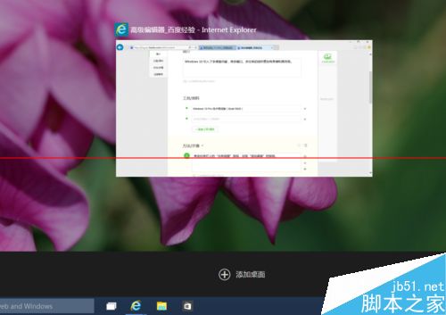 4、单击进入新增的虚拟桌面,打开一个应用程序。这时再单击任务栏上的“任务视图”按钮,就会看到各个虚拟桌面,以及每个桌面上已经打开程序的缩略图。可以单击任意一个虚拟桌面,以切换到该桌面中的当前应用窗口。