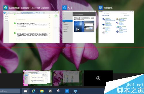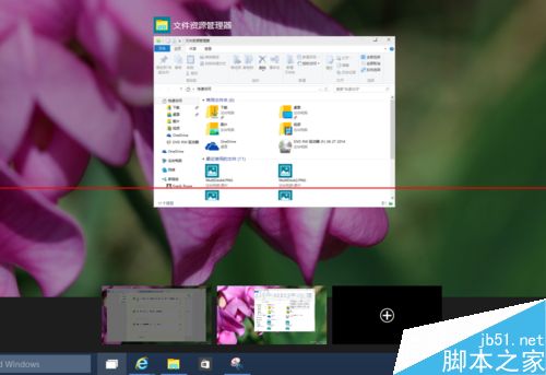 5、任务栏上的“任务视图”按钮还有切换当前桌面中所有任务窗口的功能。如果一个虚拟桌面上有两个以上的应用窗口,这时单击“任务视图”按钮,各个任务窗口就会全部以较大的缩略图的方式排好队,以供选择;然后单击其中一个窗口,该窗口即成为当前窗口。