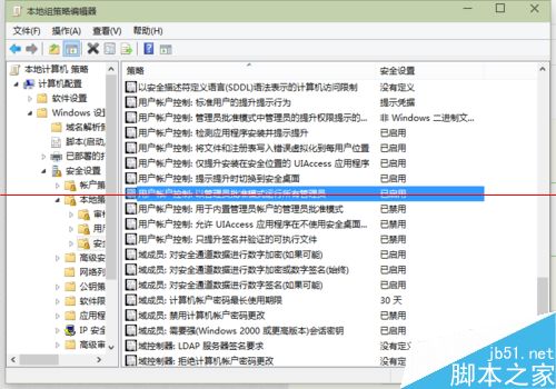2、调到图示位置将“用户账户控制:以管理员批准模式运行所有管理员”项改为已启用