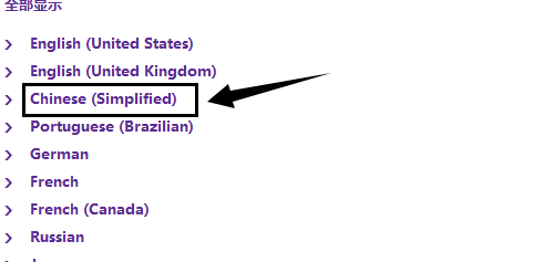 3、往下滚动就看到下载列表,对应很多国家的语言。咱们的简体中文就是列表里的第三个Chinese(Simplified),靠这么前应该是给足面子了。