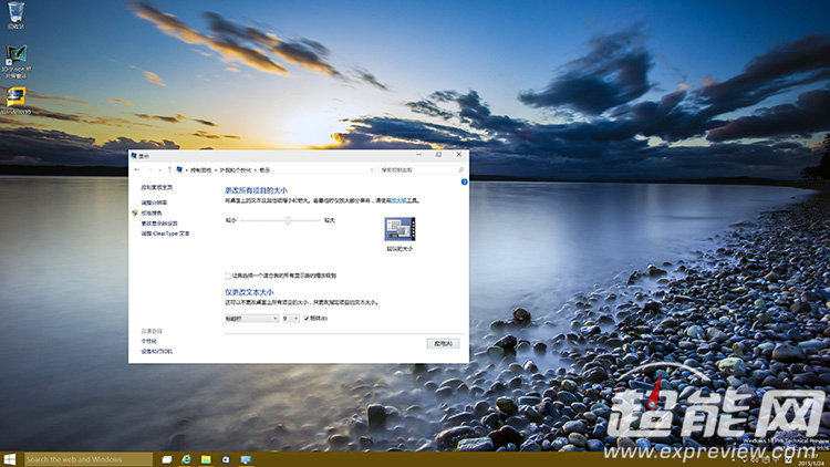 实际上安装完之后是这个样子的,图标和文字都很小,下面的任务栏倒是正常,另外IE浏览器的网页渲染也是自动调整为最佳缩放比例。
