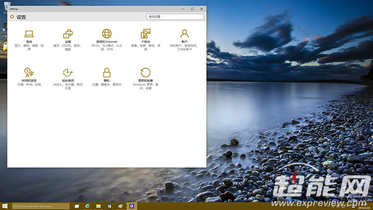 设置界面也推倒重做了,和Windows 8/8.1完全不同,图标也走简洁线条路线,但是也不怎么好看。