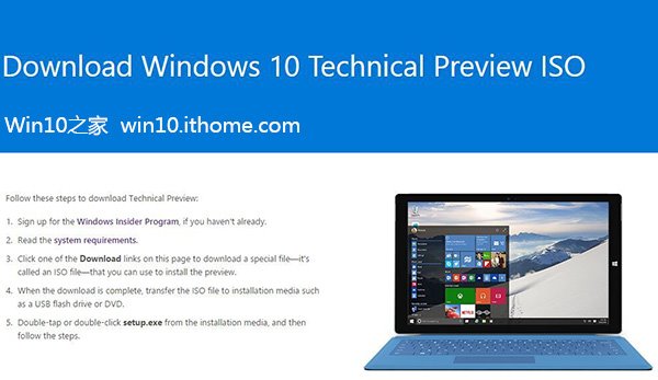 注意:Win10预览版9901用户请直接下载ISO镜像,覆盖安装升级!其他版本请在升级至9879,并确认安装KB3025380补丁后,通过预览版更新程序获取推送升级更新,也可以直接安装覆盖升级。