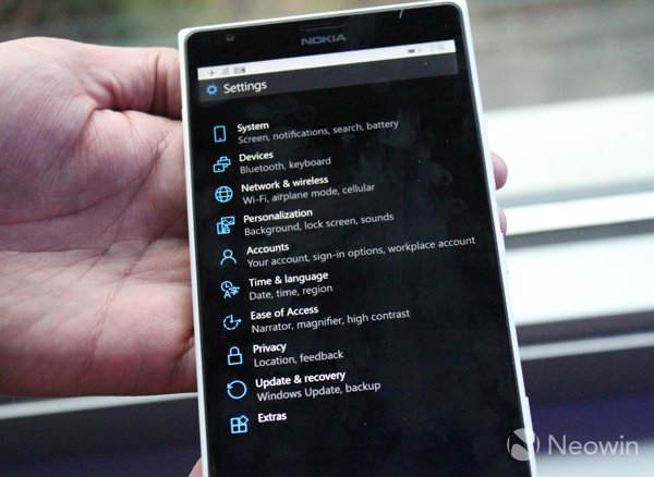 ▲Win10手机版的设置主页面,点击则进入二级界面
