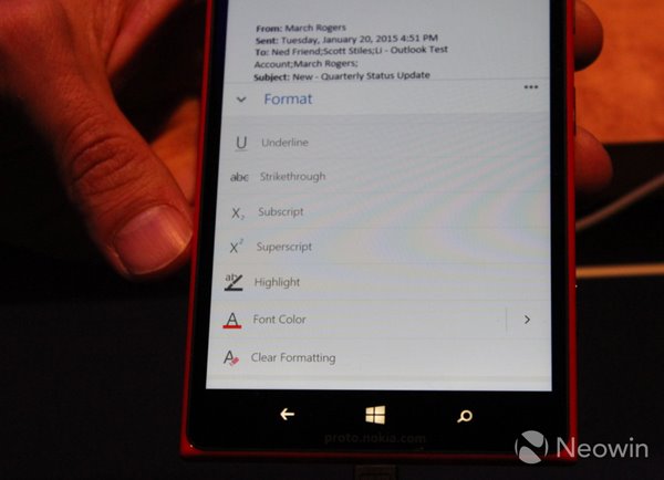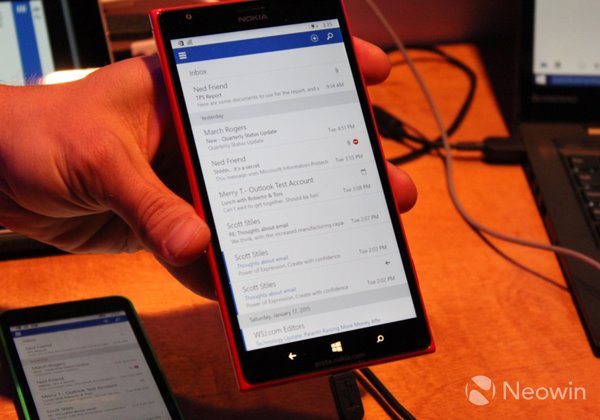 ▲Win10手机系统的邮箱应用,与目前WP8.1的邮箱有很大区别。